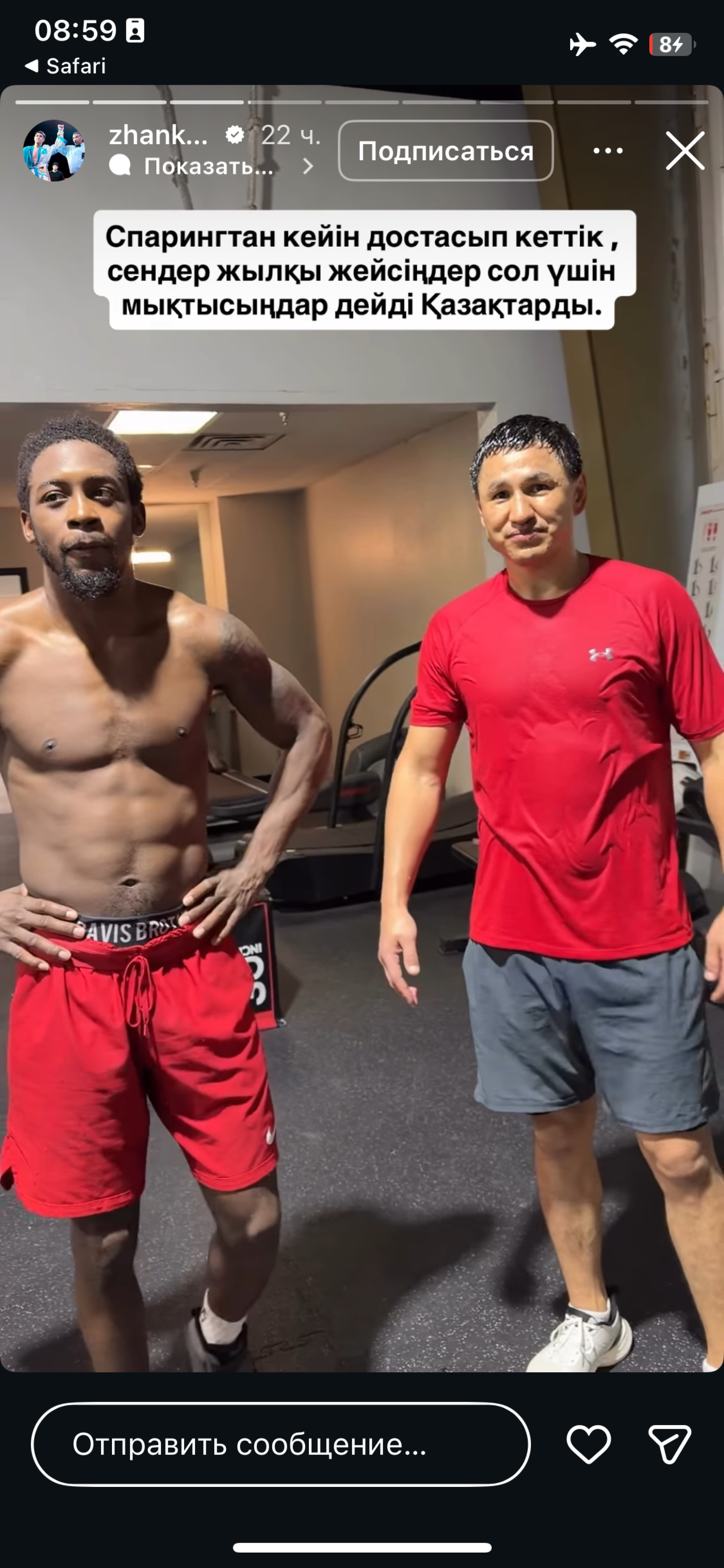 «Спаррингтен соң достасып кеттік. Ол маған «Қазақтар жылқының етін жейді, сондықтан да мықты» деп айтты», – деп жазды Жанқош әлеуметтік желіде.